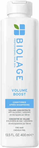 Legyen dúsabb hajad anélkül, hogy elnehezítenéd azt. A Biolage Volume Boost Conditioner hidratál anélkül, hogy leterhelné a hajat, megkönnyíti a haj kifésülését, valamint volument és emelést nyújt a hajtövektől. Megőrzi a vékonyszálú haj természetes puhaságát és fényét. Mikrofiltrált szójaprotein és polimerek gondosan kalibrált mikrodózisával gazdagítva, amelyek tökéletesen erősítik a haj volumenét és hidratáltságát.