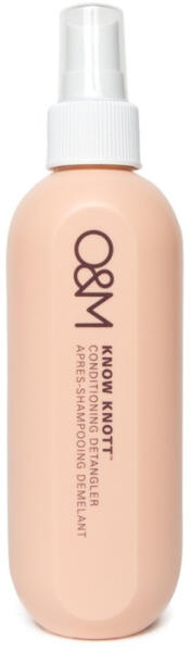 Az O&M Know Knott Conditioning Detangler egy rendkívül hidratáló, öblítést nem igénylő kondicionáló, amely megkönnyíti a haj kifésülését, beleértve a csomókat, és nem terheli meg a hajat. Alkalmas nedves és száraz haj kezelésére és védelmére. Kókusz- és makadámdió olajkomplexet, sivatagi barack és sivatagi lime kivonatokat, valamint pro-vitamin B5-öt tartalmaz. Ezek az összetevők segítenek a haj regenerálásában, táplálásában és védelemében az öregedés jelei és az UV-sugárzással szemben.