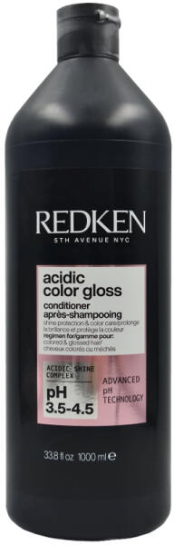 A Redken Acidic Color Gloss Conditioner egy szulfátmentes, festett hajra alkalmas kondicionáló. Fényt ad a hajnak, intenzíven táplálja és védi a színt a kifakulástól. A kondicionáló savas formulája kiegyensúlyozza a haj pH-értékét és lezárja a haj kutikulát, így molekuláris szinten intenzív fényt biztosít.