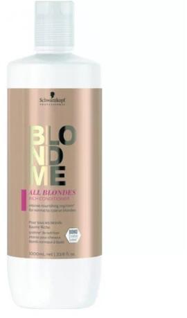 BlondMe All Blondes Rich Conditioner - tápláló balzsam normál és durva típusú szőke hajhoz, mely intenzíven táplálja és regenerálja a hajat. Helyreállítja a haj rugalmasságát és erősíti a hajszálakat, mialatt kisimítja a haj felületét. Megvédi a hajszálakat a káros környezeti hatásokkal szemben, csillogóan fényes, sima és puha hajat kapunk. Használatával könnyebb kifésülhetőséget kapunk.